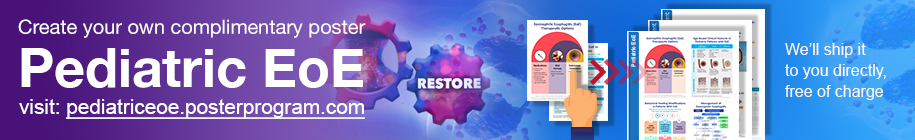 Dietary therapy is a cornerstone of pediatric EoE treatment and targets food antigens driving eosinophilic inflammation.6 An elemental diet, although effective in achieving remission, presents challenges, such as poor adherence due to palatability, feeding skill regression, and significant burden on caregivers.7 In contrast, an empiric elimination diet is easier to implement, either using a step-up or top-down approach.7 When dietary changes are made, follow-up endoscopy with biopsy is important to confirm treatment effectiveness. Dietary therapies are effective first-line options in pediatric patients, and empiric elimination diets are advantageous because allergy testing is not pathognomonic for identifying food triggers. Pediatric patients managed with elimination diets should be referred to a registered dietitian if they experience excessive weight changes, poor adherence, compromised nutritional quality, or negative effects on quality of life.3